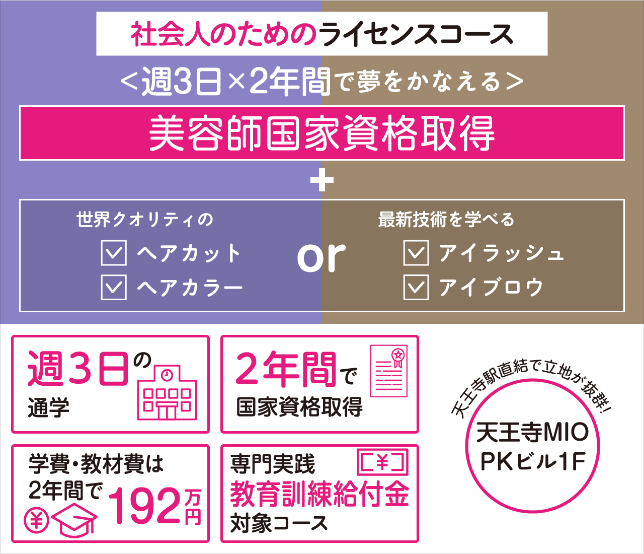 サロンに勤務しなくてもアイラッシュ・ネイル・エステシェーブ・脱毛の技術と国家資格を取得できる