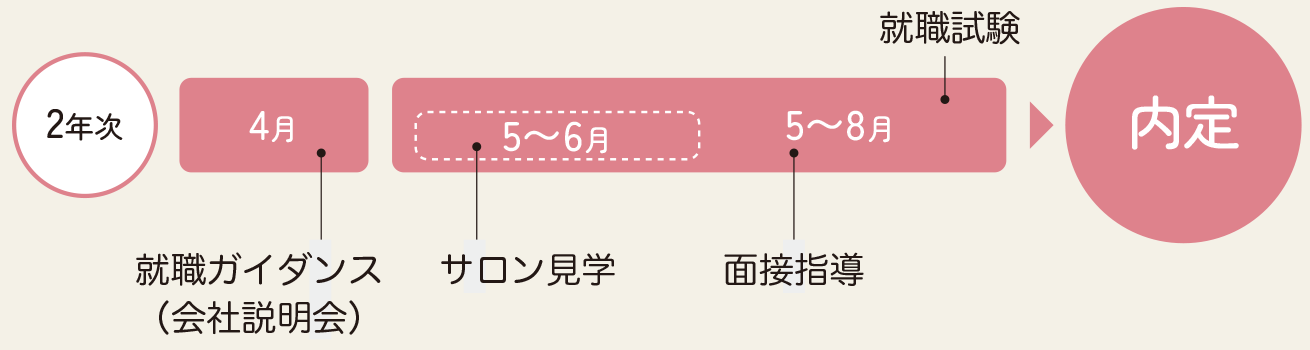 美容サロンに従事していない方でも、週3日の通学が可能な方は大きくライフスタイルを変更することなく、2年間で効率よく総合的な美容の技術や知識を身につけ、美容師国家資格取得を目指していただくことが可能です。