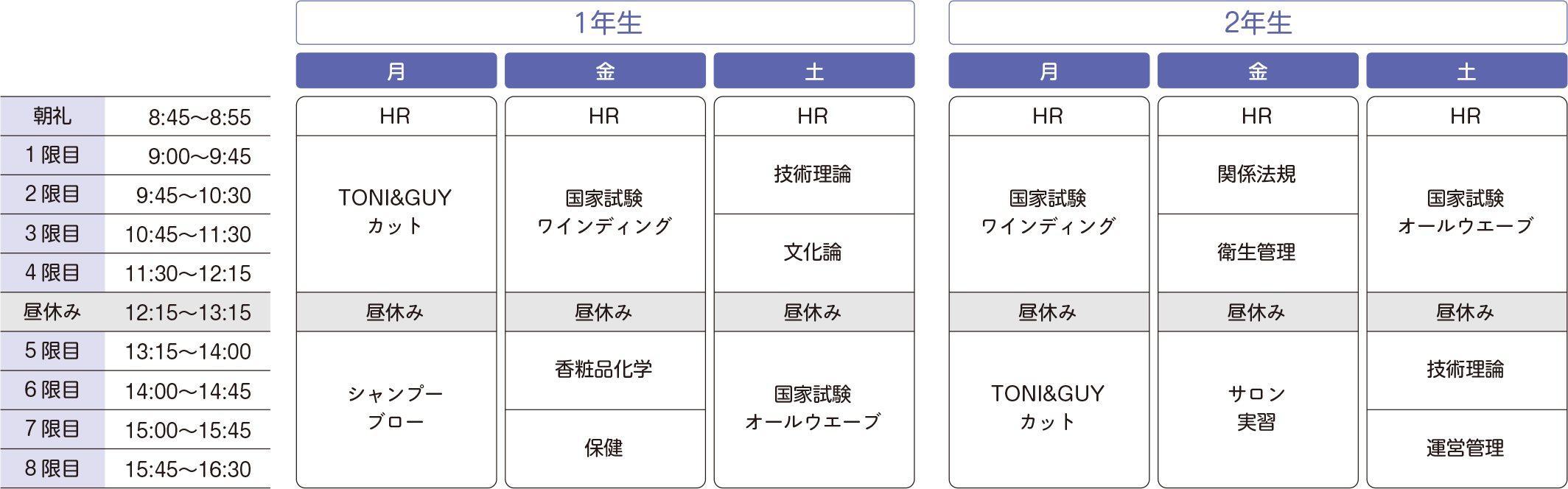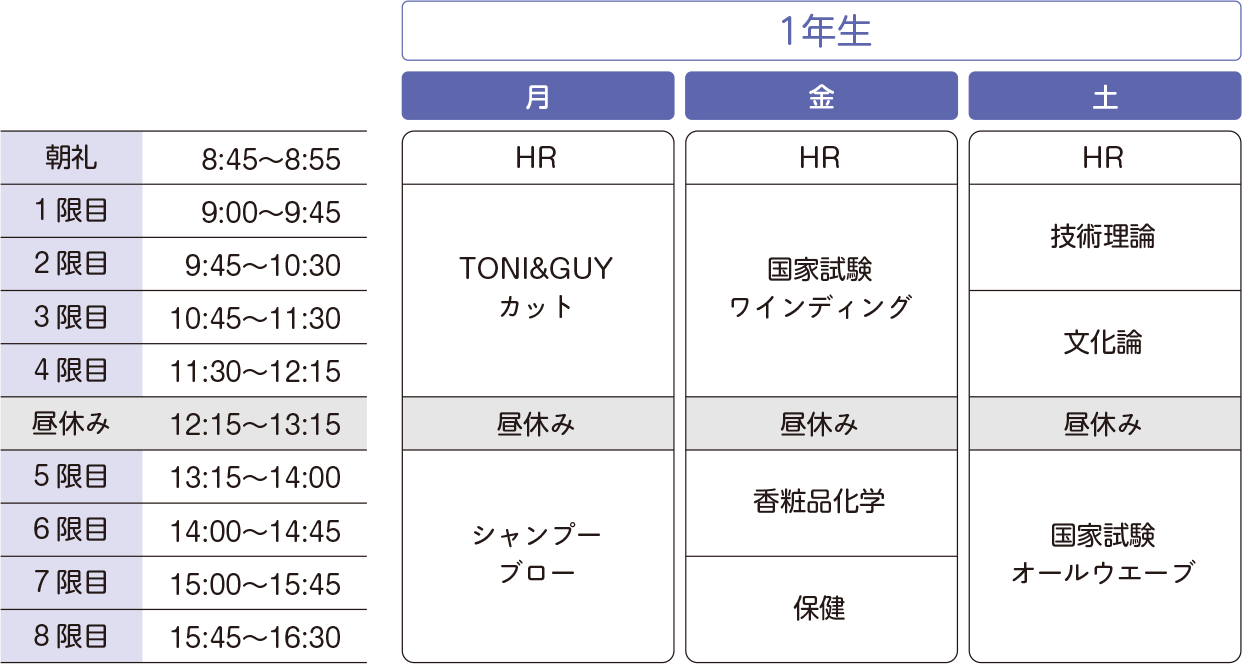 TONI&GUYで基本と定めるカットをはじめ、国家試験対策では習わない、サロンで活かせる応用技術を学習。
